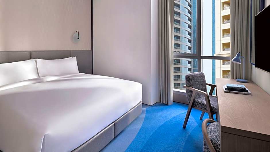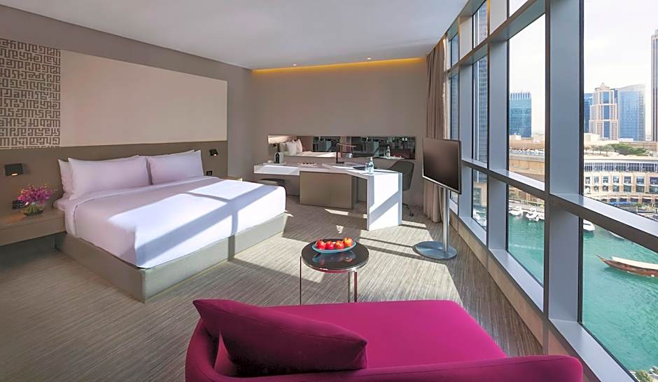The Deluxe King Room with contemporary elegance features complimentary WiFi, 40 inch flat-screen TV and a mini-bar. The bathroom offers a shower and free toiletries. Room size is 43 square yards.